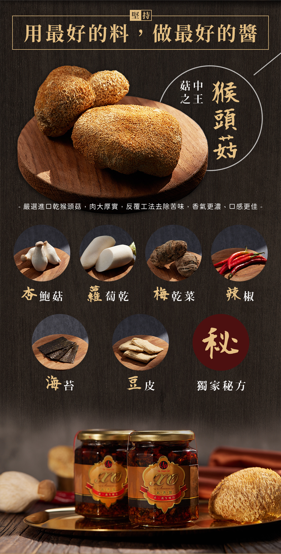 🏅 頂級原料-上選猴頭菇與杏鮑菇
