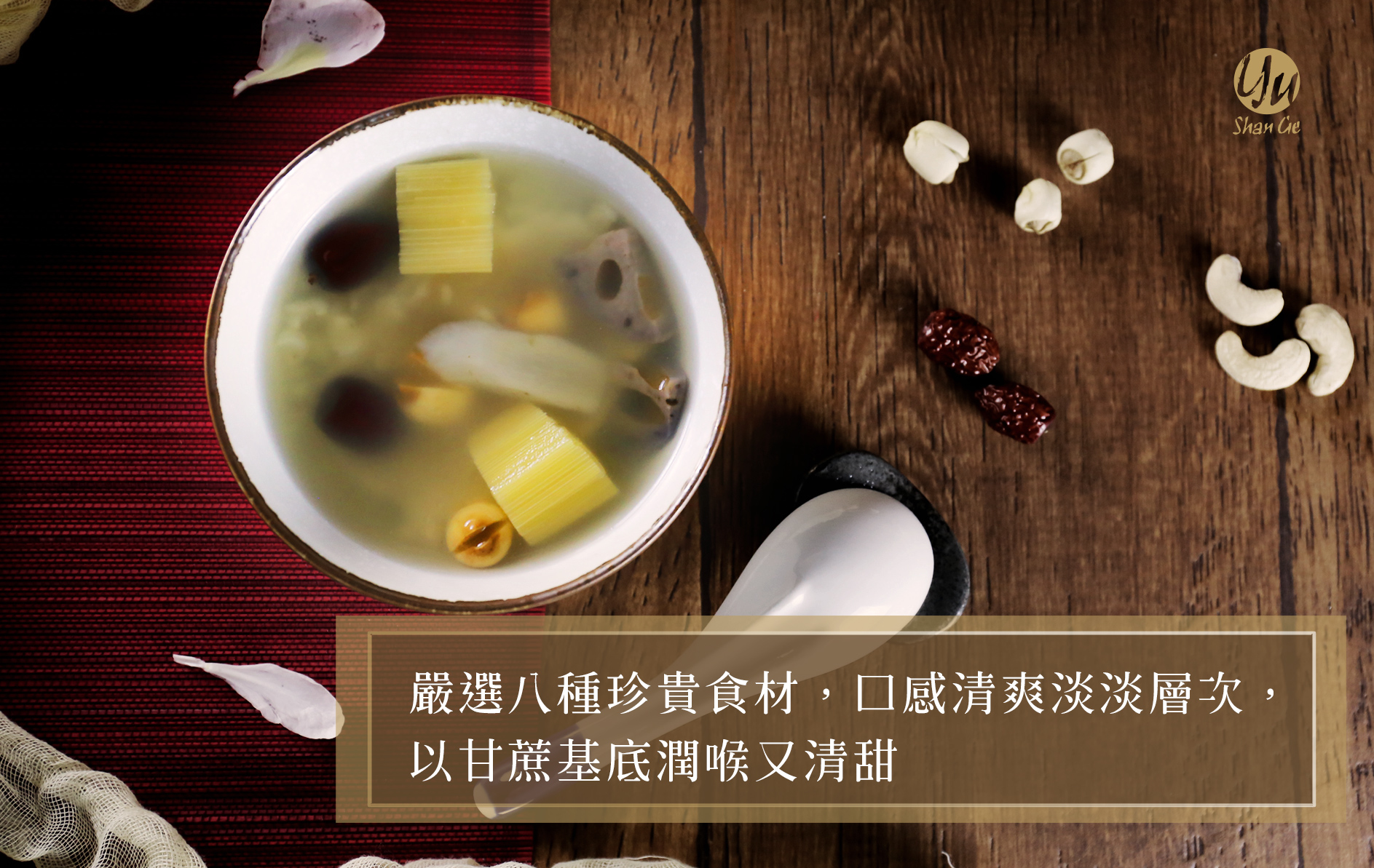 風味的誕生|星級主廚的堅持:八種上選食材,甘蔗、蓮子、腰果、紅棗等養生食材,搭配甘蔗的清甜,靚湯美顏首選